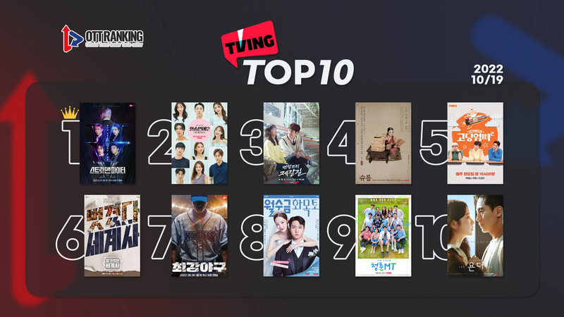 티빙(TVING)에서는 화요 예능 강자 Mnet <스트릿 맨 파이터>가 1위다. 높은 화제성 만큼 논란도 많은 <스맨파>는 세미 파이널 첫 번째 미션으로 비의 신곡 'DOMESTIC' 안무 경쟁을 펼치며 주목을 받았다. 파이널 무대가 다가오고 있지만, 댄서의 매력을 본격적으로 알린 <스트릿 우먼 파이터>에는 미치지 못하는 파급력으로 아쉬움을 남기고 있다.