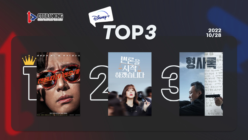 디즈니+(Disney+)에서는K-콘텐츠 인기작이 TOP3를 차지했다. 1위는 이변 없이 SBS 금토극 <천원짜리 변호사 One Dollar Lawyer>다. 최근 호평 속 막을 내린 오리지널 시리즈 <변론을 시작하겠습니다 May It Please the Court>가 2위로 유종의 미를 거뒀다.