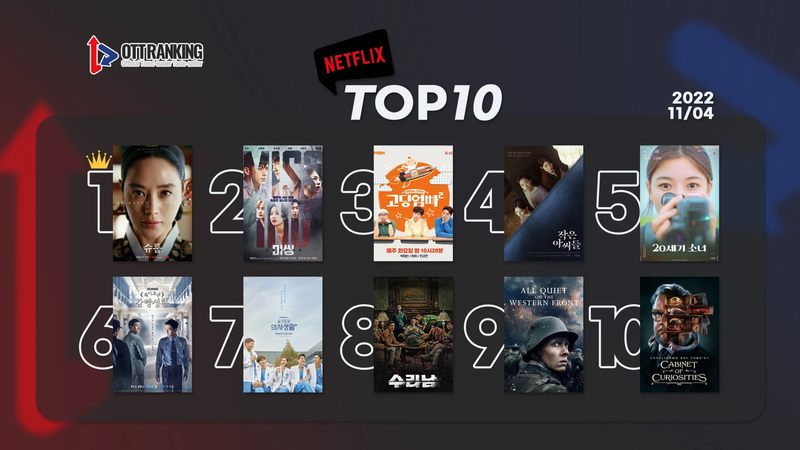 옛 드라마 <슬기로운 감빵생활>과 <슬기로운 의사생활>은 각각 6위와 7위로 역주행 중이다. 넷플릭스 영화 부문 해외 순위 1위인 <서부 전선 이상 없다>와 TV쇼 부문 해외 순위 4위 <기예르모 델토로의 호기심의 방>이 한국 차트에서는 각각 9위와 10위를 기록했다.
