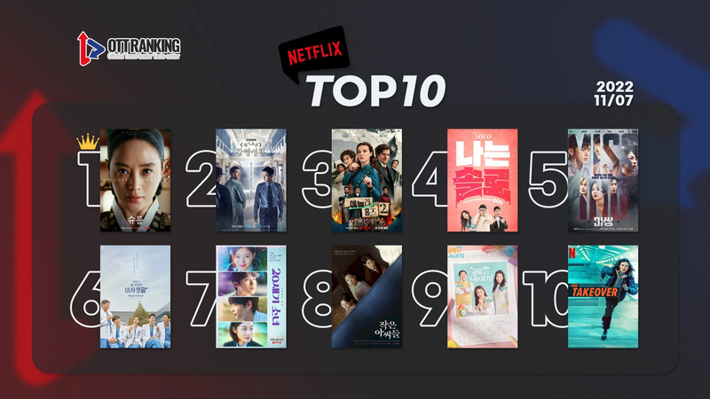 [데일리 OTT 랭킹] 11/7 티빙·넷플·웨이브 TOP10 – '슈룹' 김혜수 파워