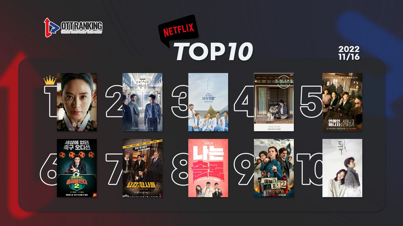 넷플릭스(Netflix)에서는 tvN <슈룹>이 부동의 1위를 지켰다. '슬기로운' 시리즈 <감빵생활>과 <의사생활>이 각각 2위와 3위에 이름을 올렸다. tvN <연예인 매니저로 살아남기>는 5위에 안착했고, <용감한 형사들2>이 7위로 등장했다. 넷플릭스 영화 <에놀라 홈즈2>는 9위에 머물렀고, 10위는 명작 <도깨비>다.
