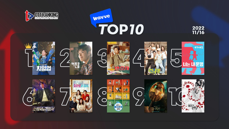 [데일리 OTT 랭킹] 11/16 웨이브·티빙·넷플 TOP10 – 월화극 경쟁 치열