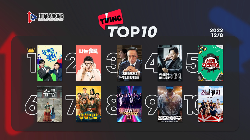 [데일리 OTT 랭킹] 12/8 웨이브·넷플·티빙 TOP10 – 자극적이면 되나?