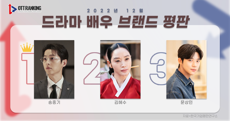 드라마 배우 브랜드평판 2022년 12월 TOP3는 송중기, 김혜수, 문상민이 장식했다.