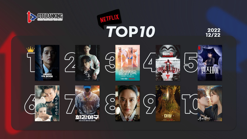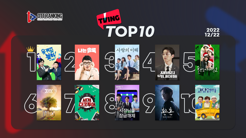 [데일리 OTT 랭킹] 12/22 티빙·웨이브·넷플 TOP10 – '사랑의 이해' 등 신작 강세