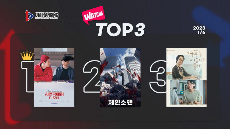 2023년 1월 1주 차 위클리 OTT 랭킹 왓챠·쿠팡·디즈니·애플 TOP3 TOP3까지 모아보는 주 1회 차트