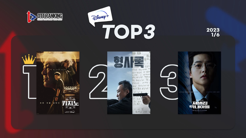 2023년 1월 첫째 주, 디즈니+, 왓챠, 쿠팡플레이, 애플TV+ TOP3 순위를 살펴본다.