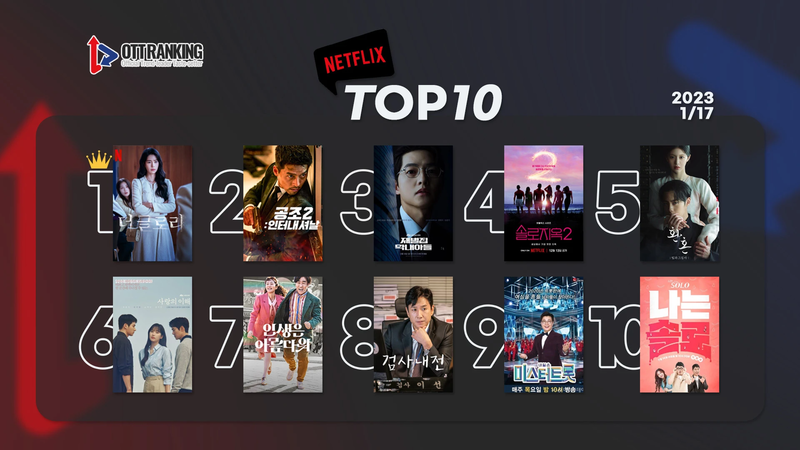 [데일리 OTT 랭킹] 1/17 넷플릭스·웨이브·티빙 TOP10 – ‘더 글로리’ 독주, 누가 막나