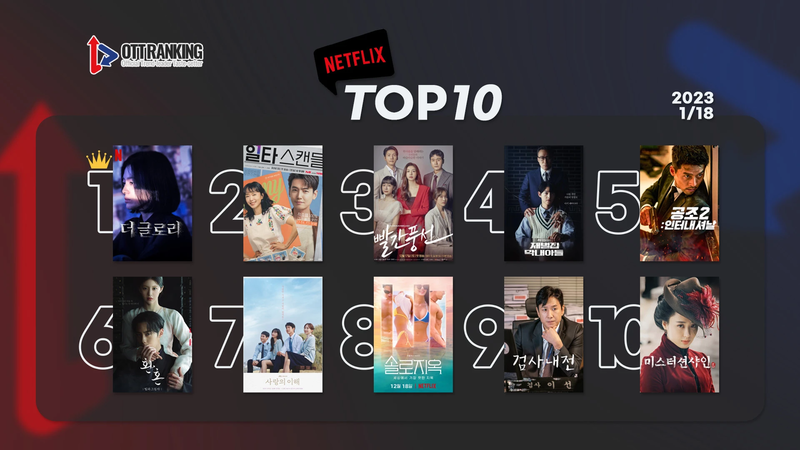 넷플릭스(Netflix) 1위는 오리지널 드라마 <더 글로리>가 굳건히 지키고 있다. 파트1을 무한 반복하며 '나노 앓이'에 돌입한 시청자들은 새로 발견한 복선이나 디테일한 연출을 활발히 공유하며 파트2를 기다리는 지루함을 달래고 있다. 특히 어린 연진(신예은 분)에게 복수를 다짐하는 동은(정지소 분)의 모습 뒤 살짝 열린 문틈 사이로 비추는 빛 때문에 십자가를 등에 진 듯한 주인공의 모습, 체육관 바닥에 그려진 선을 가운데 두고 물려받을 것이 있는 아이들과 없는 아이들이 나누어진 장면 등은 그 섬세한 연출력에 감탄을 자아내게 하고 있다.