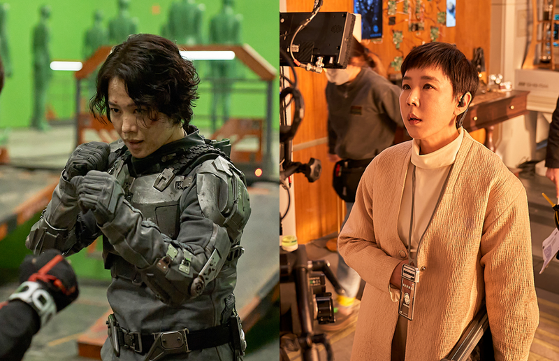 <정이>에서 전투 A.I.로 분한 그는 <지옥>에서 못다한 액션을 해소했다. SF 특성상 CG로 처리되는 부분이 많아 상상의 대상과 연기하는 자기 모습에 '현타'를 느끼기도 하며 쉽지 않은 여정이었지만, 신선하고 재미있는 경험이었다고 털어놨다. 특히 로봇이지만 감정을 드러내야 하는 복잡하고 섬세한 작업에 집중하며 만족스러운 결과를 냈다고 자신감을 보였다.