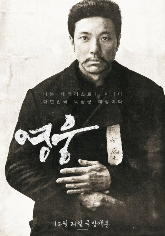<영웅>은 일제강점기 하얼빈에서 이토 히로부미를 사살한 뒤 일본 법정에서 사형 판결을 받은 안중근 의사가 거사를 준비하던 때부터 순국할 때까지 1년간의 모습을 그렸으며, 안중근 의사의 순국 100주년을 맞이해 제작한 동명의 뮤지컬을 영화화한 작품이다. <해운대>, <국제시장>으로 국내 최초 ‘쌍천만 감독’의 타이틀을 얻은 윤제균 감독이 메가폰을 잡았고, 10년 이상 뮤지컬 <영웅>의 안중근 역을 맡은 정성화가 안중근 역할을 맡아 열연했다. 김고은-나문희-조재윤-배정남-이현우-박진주 등 스타들도 함께했다.