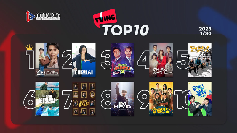 [데일리 OTT 랭킹] 1/30 웨이브·티빙·넷플릭스 TOP10 - 주말극 희비 교차