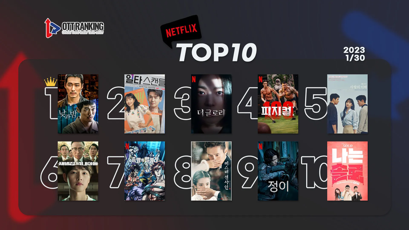 tvN 토일극 <일타 스캔들>이 2위, 오리지널 드라마 <더 글로리>는 3위를 차지하며 최상위권을 벗어나지 않고 있다.