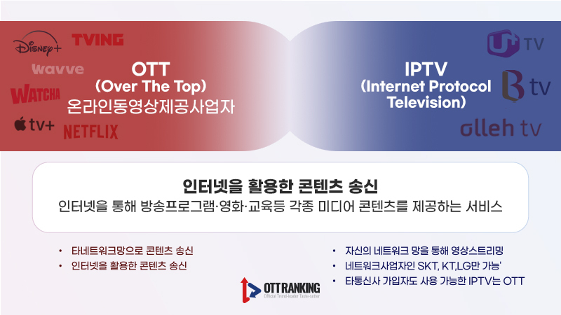 IPTV 업계는 전통적인 IPTV 서비스와 OTT 서비스를 혼합하는 새로운 전략을 채택하고 있다. 두 플랫폼 간의 경쟁을 경쟁이 아니라 공생 관계로 바라보는 것이다. 또한 시청 플랫폼이 다양화되는 추세에 따라 OTT를 자사 서비스에 접목해 서비스를 더욱 풍성하게 만들겠다는 취지다.
