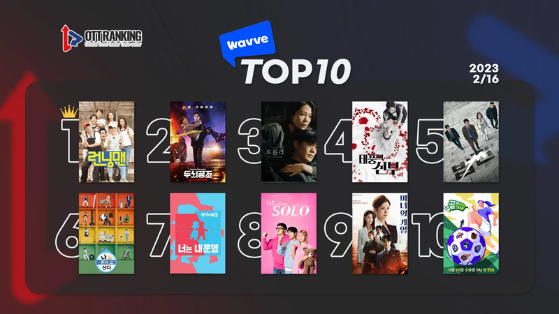 웨이브(Wavve) 1위는 전날에 이어 SBS <런닝맨>이 차지했다. 겨울 MT를 떠난 <런닝맨> 멤버들의 소탈한 모습이 일상에 지친 시청자들에게 웃음을 선사하며 꾸준히 사랑받고 있다.