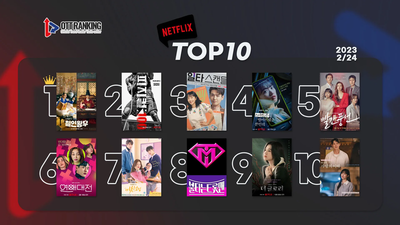 넷플릭스(Netflix) 1위는 전날보다 한 계단 오른 tvN 2020년 작 <철인왕후>가 차지했다. 예기치 못한 사고로 대한민국 대표 허세남 영혼이 깃든 중전 김소용(신혜선 분)과 임금 철종(김정현 분) 사이에서 벌어지는 이야기를 그린 이 코미디 사극은 넷플릭스를 통해 공개되며 폭넓은 시청자를 만나고 있다. 특히 당시 주연으로 활약한 배우 신혜선이 해당 드라마 이후 작품 선택에 신중을 기울이며 만날 기회가 줄어들자, 신혜선의 반가운 모습을 보려는 팬들이 넷플릭스로 몰려들며 드라마의 역주행을 이끌고 있다.
