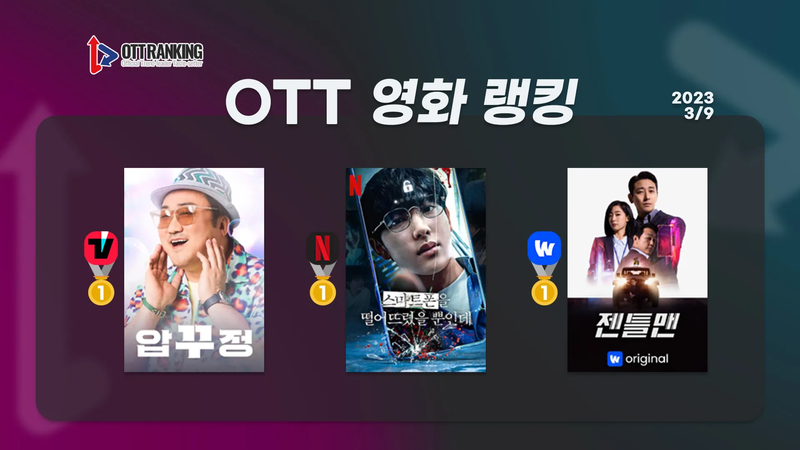 9일 OTT 영화 랭킹 극장 흥행 저조해도 OTT에선 인기 '압꾸정', SVOD 공개 이후 1위로 성큼