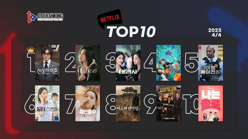 넷플릭스(Netflix) 1위에는 JTBC 토일극 <신성한, 이혼>이 올랐다. 이혼 전문 변호사의 파란만장한 이야기를 그린 작품으로 조승우의 2년 만의 복귀작으로 주목받았다. 작품은 주연을 맡은 배우 한혜진의 연기력 논란과 늘어지는 스토리 등으로 큰 성과를 내지 못했지만, 감동을 선사하는 따뜻한 이야기와 조승우-김성균-김문성 세 친구의 유쾌한 케미로 호평받으며 주말 밤을 사로잡고 있다. 앞으로 2회차밖에 남지 않은 만큼 몰아 보기를 위해 OTT로 정주행을 시작하는 시청자들이 늘어나며 한동안 차트 상단을 유지할 전망이다.