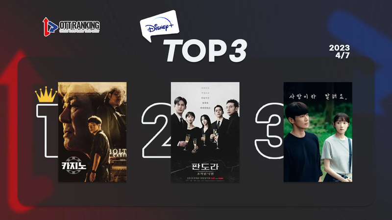 2위는 tvN 토일극 <판도라: 조작된 낙원 Pandora: Beneath the Paradise>이다. 이지아 주연의 작품으로 SBS <펜트하우스>의 김순옥 사단이 함께해 2023년 상반기 기대작으로 꼽혔지만, “스토리에 중심이 없고 난잡하다”는 평을 받으며 시청률 부진을 면치 못하고 있다. 하지만 이지아를 비롯해 이상윤, 장희진, 박기웅, 봉태규 등 화려한 라인업으로 스트리밍을 제공하는 디즈니+에서 인기를 끌고 있는 모양새다.