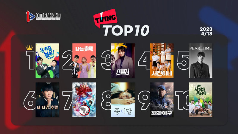 [데일리 OTT 랭킹] 4/13 티빙·넷플·웨이브 TOP10 – 알록달록 티빙 차트