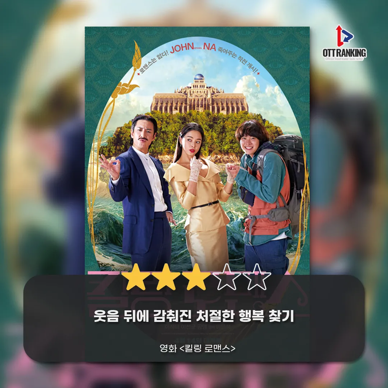 [OTT 한줄평] 영화 ‘킬링 로맨스’ 입력 2023-04-19 14:13 수정 2025-04-09 18:45 영화 <킬링 로맨스> ★★★ 웃음 뒤에 감춰진 처절한 행복 찾기 Previous ‘퀸메이커’ 글로벌 1위, 넷플릭스 차트 점령한 K-드라마 Next [데일리 OTT 랭킹] 4/19 티빙·넷플·웨이브 TOP10 – 신작 드라마 관련기사 Romance in 21st Century Grand Prince’s Wife Sparks BuzzElena NovakDrama Review 2025-11-13 19:26 [OTT 한줄평] 영화 '3일의 휴가'Jane RimOTT Online Line Review 2024-03-15 15:41 [OTT 한줄평] 영화 '비밀'Jane RimOTT Online Line Review 2024-03-15 15:40 [OTT 한줄평] 영화 '뜨거운 피'Jane RimOTT Online Line Review 2024-03-15 15:38 [첫방D-DAY] “지금까지 이런 코미디는 없었다”, 이병헌 감독✕류승룡✕안재홍의 ‘닭강정’ (넷플)Jane RimContents 2024-03-15 15:30 [위클리 OTT 랭킹] 3월 2주차 디즈니·쿠팡·왓챠·애플 TOP3 – 스릴과 코믹 사이Jane RimWeekly Top3 2024-03-15 13:49 [데일리 OTT 랭킹] 3/15 웨이브·티빙·넷플 TOP10 – ‘나는 SOLO’ 과몰입의 날안현정Daily Top10 2024-03-15 10:34 [오늘의 OTT 통합 랭킹] 3월 15일 – 설레거나 스릴 있거나Jane RimOTT All Rankings 2024-03-15 10:31 [OTT 영화 랭킹] 3/14 넷플·티빙·웨이브 – 동화 같은 이야기Jane RimMovie Ranking 2024-03-14 15:18 Romance in 21st Century Grand Prince’s Wife Sparks Buzz [OTT 한줄평] 영화 '3일의 휴가' [OTT 한줄평] 영화 '비밀' [OTT 한줄평] 영화 '뜨거운 피' [첫방D-DAY] “지금까지 이런 코미디는 없었다”, 이병헌 감독✕류승룡✕안재홍의 ‘닭강정’ (넷플) [위클리 OTT 랭킹] 3월 2주차 디즈니·쿠팡·왓챠·애플 TOP3 – 스릴과 코믹 사이 [데일리 OTT 랭킹] 3/15 웨이브·티빙·넷플 TOP10 – ‘나는 SOLO’ 과몰입의 날 [오늘의 OTT 통합 랭킹] 3월 15일 – 설레거나 스릴 있거나 [OTT 영화 랭킹] 3/14 넷플·티빙·웨이브 – 동화 같은 이야기 [데일리 OTT 랭킹] 3/14 넷플·티빙·웨이브 TOP10 – 사탕보다 달콤한 [오늘의 OTT 통합 랭킹] 3월 14일 – ‘눈물의 여왕’, 흥행의 제왕! [매거진] 풋풋한 사랑으로 가득 채운 화이트데이 OTT 추천작