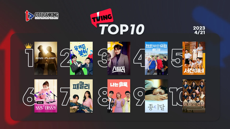 [데일리 OTT 랭킹] 4/21 티빙·넷플·웨이브 TOP10 – '보이즈 플래닛', 별의 탄생