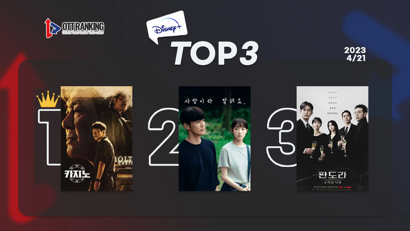 4월 셋째 주, 쿠팡플레이, 디즈니+, 왓챠, 애플TV+ TOP3 순위를 살펴본다.