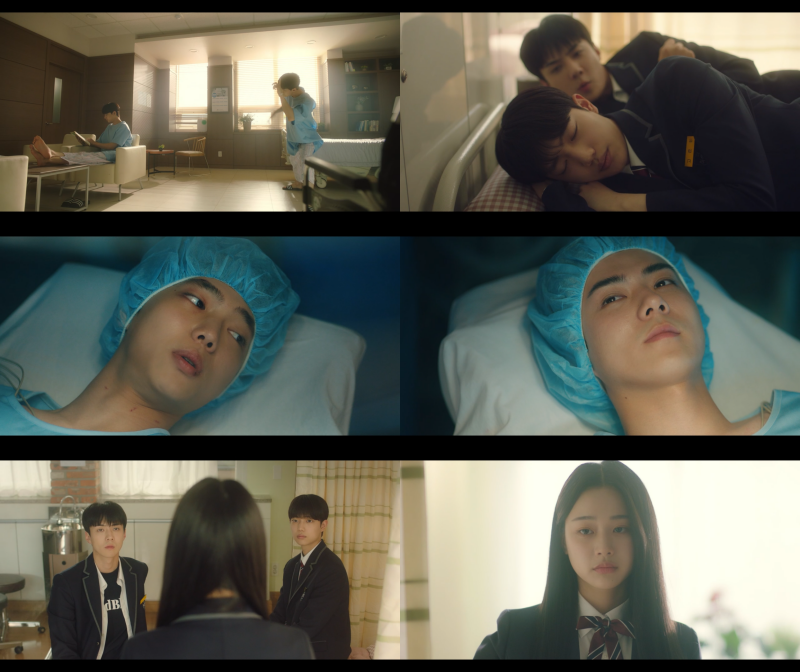 베일을 벗은 <우사모> 1,2화는 독특한 여운을 남겼다. 첫 장면은 병원에서 시작된다. 수술을 받기 전 고유는 "나처럼 수술복 잘 어울리는 사람 봤냐"며 호들갑을 떨었고, 준희는 책을 읽으며 차분한 모습으로 정반대의 성격을 드러냈다. 남자 고등학생 특유의 티격태격 우정을 선보이던 이들은 마취 전까지 깔깔거렸지만, 곧 '삐-' 심정지 소리와 함께 긴장감을 고조시켰다.