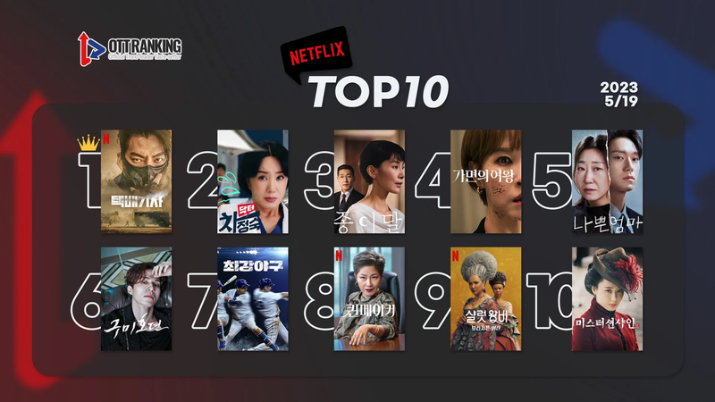 넷플릭스(Netflix) 1위는 오리지널 드라마 <택배기사>다. 공개 첫 주 만에 넷플릭스 부문 글로벌 TOP10 TV(비영어) 부문 1위를 차지하며 K-드라마의 저력을 보여주고 있는 작품은 극심한 대기 오염으로 산소호흡기 없이는 살 수 없는 2071년의 한반도를 배경으로 한 독창적인 세계관이 매력적인 작품이다. 250억원이라는 대규모 제작비가 투입된 만큼 압도적인 비주얼과 액션으로 시청자들의 마음을 사로잡는 한편, SF 불모지로 평가받는 한국에서 한국형 디스토피아를 전 세계에 선보이며 글로벌 인기를 얻고 있는 가운데 장기 흥행을 이어갈 수 있을지 귀추가 주목된다.