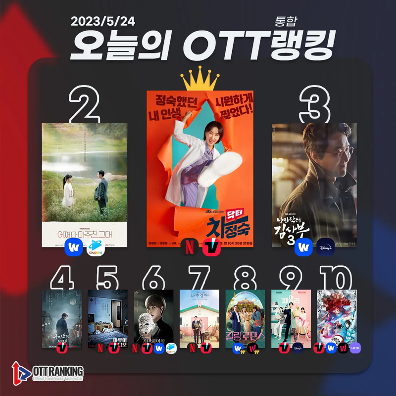 [오늘의 OTT 통합 랭킹] 5월 24일 – '닥터 차정숙' 드디어 정상