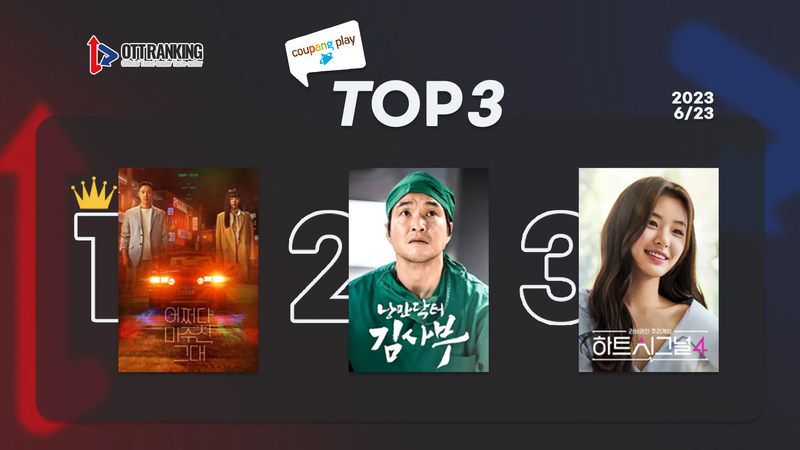 2위는 SBS <낭만닥터 김사부 Romantic Dr. Kim>다. 쿠팡플레이에서는 시즌1과 시즌2까지만 시청 가능하지만, 견고한 ‘돌담즈’ 세계관으로 시즌3 또한 뜨거운 사랑을 받았던 만큼 전작에 대한 관심도 계속되고 있다. 채널A <하트시그널4 Heart Signal 4>는 3위다. ‘시그널 하우스’에서 펼쳐지는 청춘 남녀들의 연애 현장을 직접 관찰하고 분석하며 러브라인을 추리하는 이 프로그램은 원조 연애 예능의 힘을 자랑하며 쿠팡플레이 차트 상위권은 물론 OTT-TV 쇼 부문 화제성 1위를 지키며 순항 중이다.