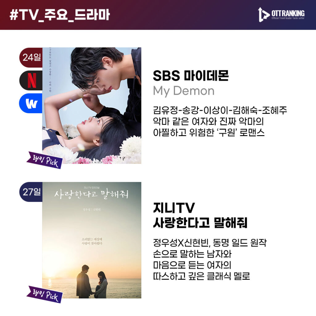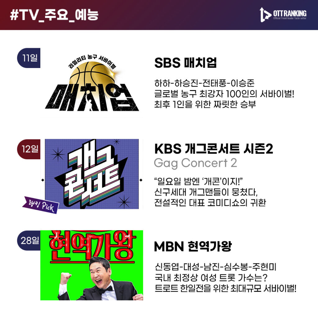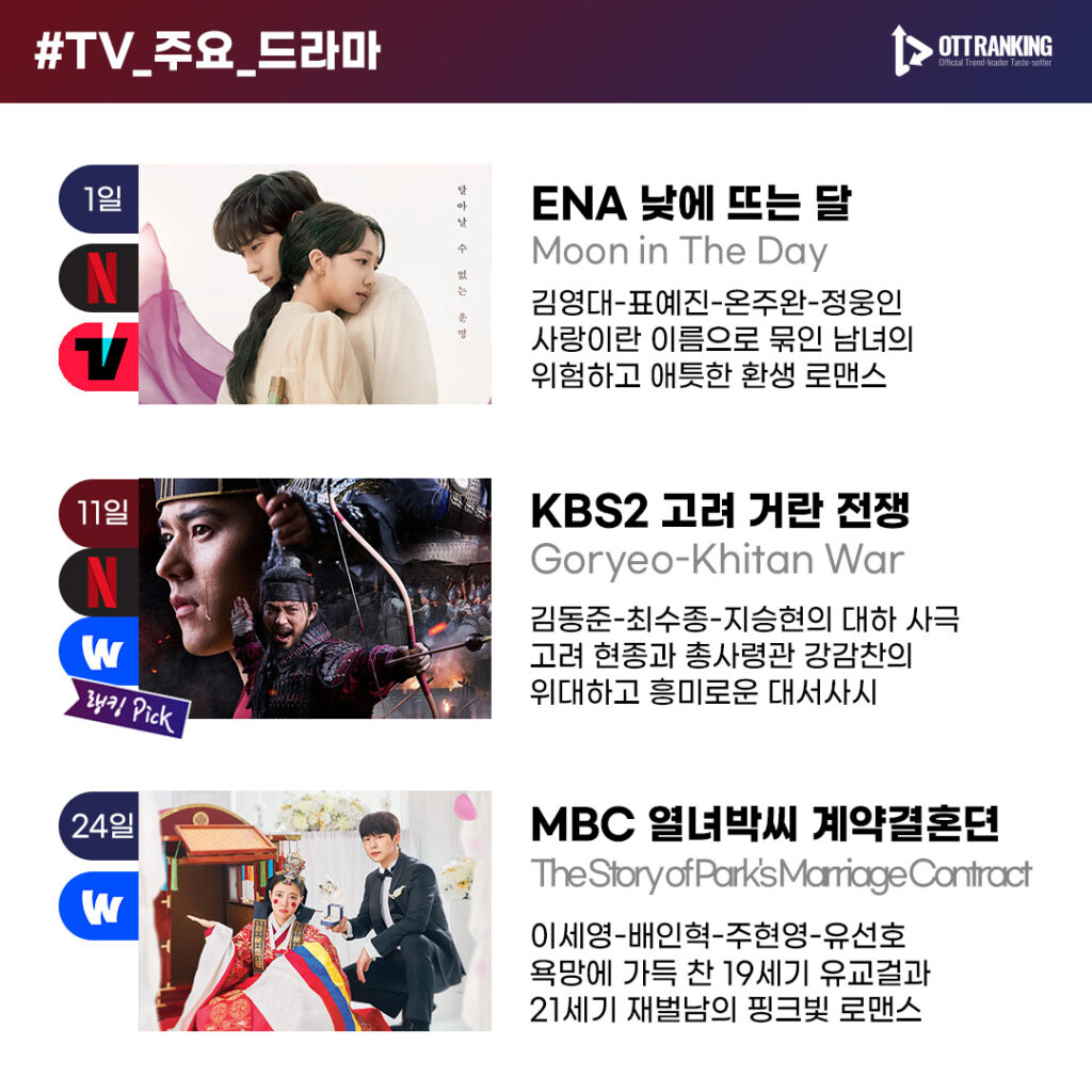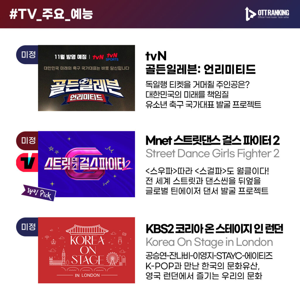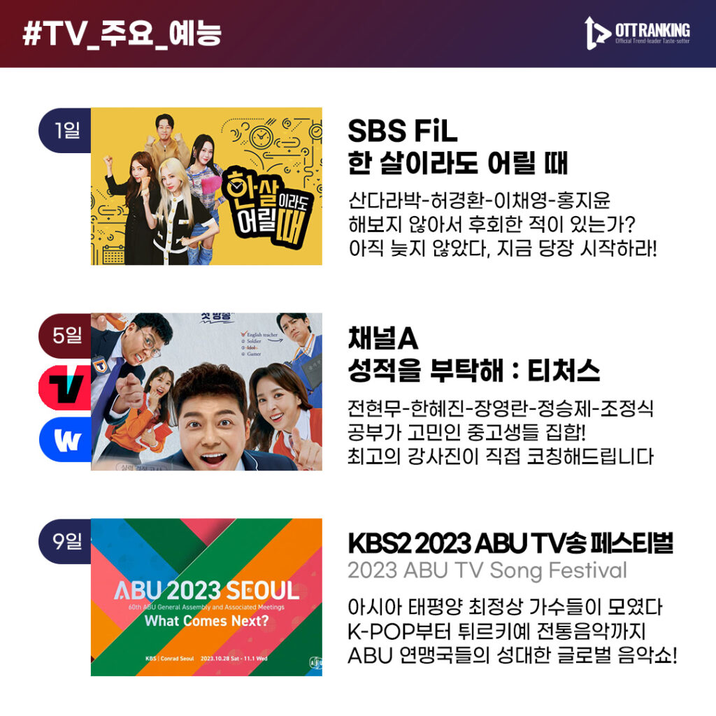[매거진] 희로애락을 책임질 11월 TV 신작 Picture Member for 1 year 1 month Real name Sellin Kim Bio 좋은 콘텐츠는 언제나 일상 속 소통과 휴식의 일부분이 됩니다. 누구나 편안하고 즐길 수 있는 콘텐츠로 일상 속 소소한 즐거움을 선사하겠습니다. 입력 2023-10-31 17:16 수정 2025-07-01 09:51 11월 TV 드라마-예능 주요 신작 탄탄한 배우진이 완성한 라인업 스포츠 스타→가수 총출동한 예능 Picture Member for 1 year 1 month Real name Sellin Kim Bio 좋은 콘텐츠는 언제나 일상 속 소통과 휴식의 일부분이 됩니다. 누구나 편안하고 즐길 수 있는 콘텐츠로 일상 속 소소한 즐거움을 선사하겠습니다. Previous [매거진] 11월 OTT 주요 신작, 콘텐츠 천국 Next [매거진] 작품성 보장! 탄탄함으로 중무장한 11월 개봉 예정� 관련기사 Romance in 21st Century Grand Prince’s Wife Sparks BuzzElena NovakDrama Review 2025-11-13 19:26 [OTT 한줄평] 영화 '3일의 휴가'Jane RimOTT Online Line Review 2024-03-15 15:41 [OTT 한줄평] 영화 '비밀'Jane RimOTT Online Line Review 2024-03-15 15:40 [OTT 한줄평] 영화 '뜨거운 피'Jane RimOTT Online Line Review 2024-03-15 15:38 [첫방D-DAY] “지금까지 이런 코미디는 없었다”, 이병헌 감독✕류승룡✕안재홍의 ‘닭강정’ (넷플)Jane RimContents 2024-03-15 15:30 [위클리 OTT 랭킹] 3월 2주차 디즈니·쿠팡·왓챠·애플 TOP3 – 스릴과 코믹 사이Jane RimWeekly Top3 2024-03-15 13:49 [데일리 OTT 랭킹] 3/15 웨이브·티빙·넷플 TOP10 – ‘나는 SOLO’ 과몰입의 날안현정Daily Top10 2024-03-15 10:34 [오늘의 OTT 통합 랭킹] 3월 15일 – 설레거나 스릴 있거나Jane RimOTT All Rankings 2024-03-15 10:31 [OTT 영화 랭킹] 3/14 넷플·티빙·웨이브 – 동화 같은 이야기Jane RimMovie Ranking 2024-03-14 15:18 Romance in 21st Century Grand Prince’s Wife Sparks Buzz [OTT 한줄평] 영화 '3일의 휴가' [OTT 한줄평] 영화 '비밀' [OTT 한줄평] 영화 '뜨거운 피' [첫방D-DAY] “지금까지 이런 코미디는 없었다”, 이병헌 감독✕류승룡✕안재홍의 ‘닭강정’ (넷플) [위클리 OTT 랭킹] 3월 2주차 디즈니·쿠팡·왓챠·애플 TOP3 – 스릴과 코믹 사이 [데일리 OTT 랭킹] 3/15 웨이브·티빙·넷플 TOP10 – ‘나는 SOLO’ 과몰입의 날 [오늘의 OTT 통합 랭킹] 3월 15일 – 설레거나 스릴 있거나 [OTT 영화 랭킹] 3/14 넷플·티빙·웨이브 – 동화 같은 이야기 [데일리 OTT 랭킹] 3/14 넷플·티빙·웨이브 TOP10 – 사탕보다 달콤한 [오늘의 OTT 통합 랭킹] 3월 14일 – ‘눈물의 여왕’, 흥행의 제왕! [매거진] 풋풋한 사랑으로 가득 채운 화이트데이 OTT 추천작