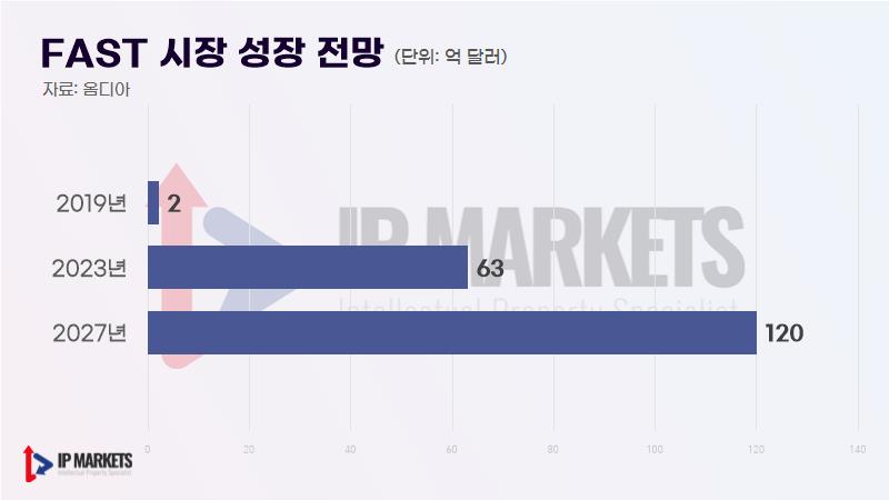 CTV(커넥티드TV) 보급률 상승 역시 FAST 시장 성장에 긍정적 영향을 미쳤다. 시장조사업체 옴디아에 따르면 지난 1분기 글로벌 TV 시장에서 스마트 TV 출하량이 차지하는 비중은 90% 이상이었다. 소비자가 FAST를 접할 수 있는 '통로'가 한층 넓어졌다는 의미다. 수요 급증에 힘입어 2019년 2억 달러(약 2,719억원) 규모였던 글로벌 FAST 시장은 올해 63억 달러(약 8조5,655억원)까지 급성장했고, 2027년에는 120억 달러(약 16조원)까지 커질 것으로 전망된다.