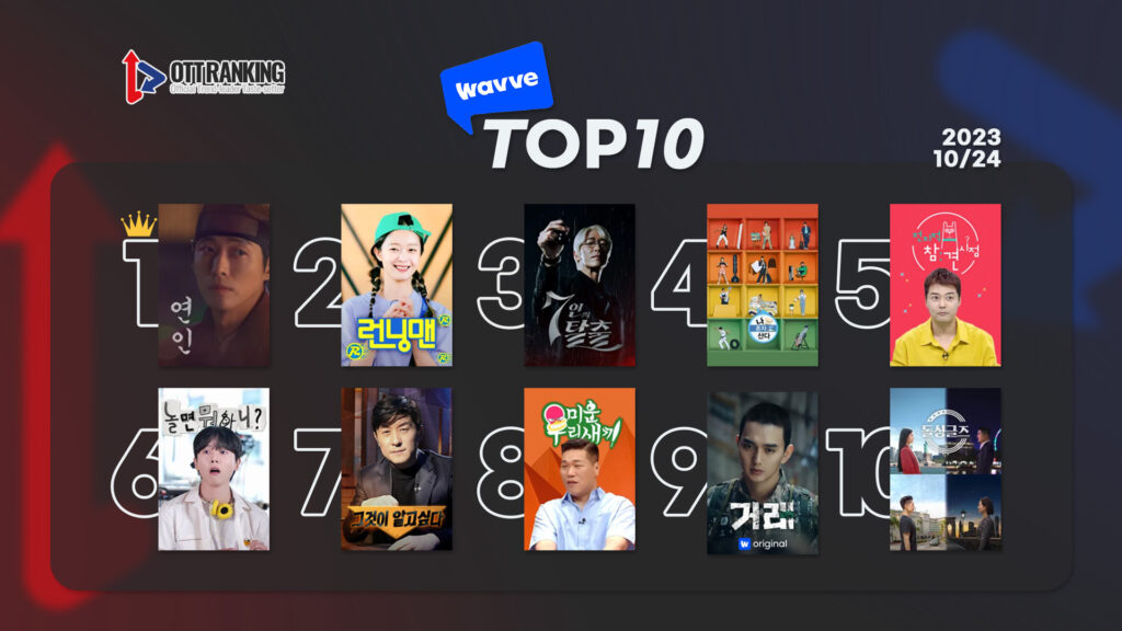 웨이브(Wavve) 1위는 MBC 금토극 <연인>이 차지했다. 작품은 전날(23일) 발표된 한국갤럽의 ‘요즘 가장 즐겨보는 방송프로그램’ 조사에서 당당히 1위를 차지하며 ‘연인 열풍’을 이어가고 있다. 드라마를 향한 열띤 관심과 응원에 주연 배우 남궁민과 안은진도 화답했다. 남궁민은 “한국인이 좋아하는 프로그램 1위라니 힘이 난다”며 앞으로도 많은 관심과 사랑을 당부했으며, 안은진은 “마지막까지 좋은 작품으로 시청자 여러분의 사랑에 보답할 수 있도록 배우들과 스태프들 모두 최선을 다해 촬영 중”이라며 감사의 인사를 전했다.