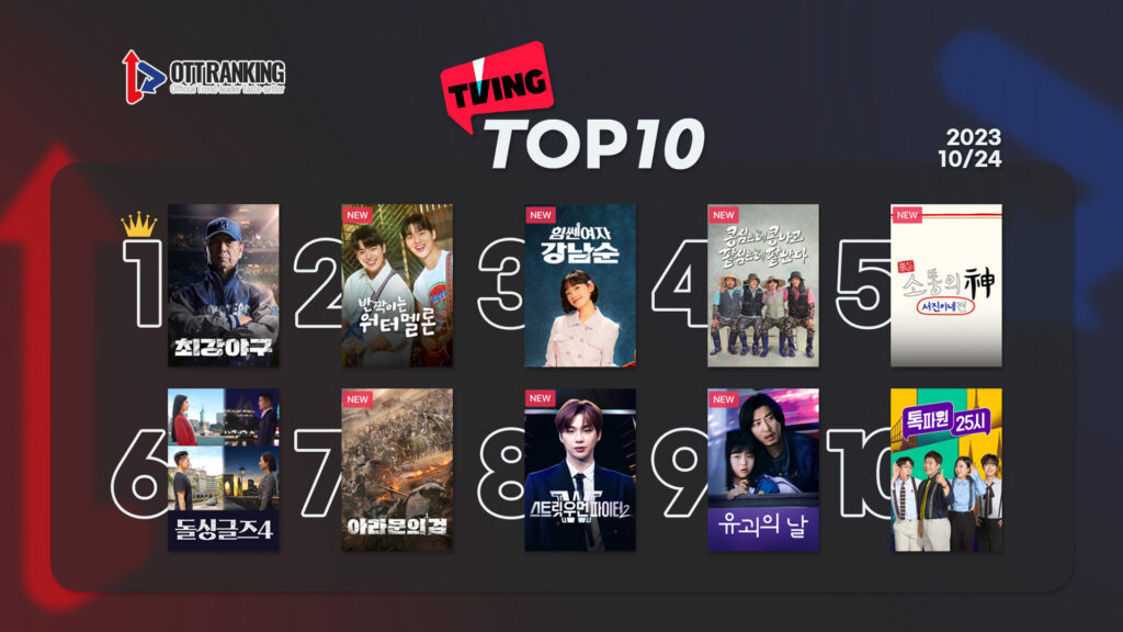 [데일리 OTT 랭킹] 10/24 티빙·웨이브·넷플 TOP10 – 위기의 ‘최강야구’
