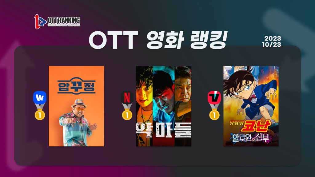 23일 OTT 영화 랭킹 장기 집권 시작한 ‘악마들’, 넷플 1위 수성 ‘압꾸정’-‘명탐정 코난’ 역주행 행진