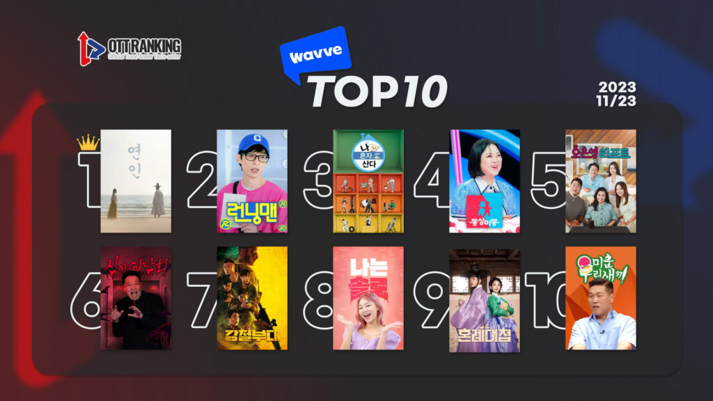 웨이브(Wavve) TOP3는 굳건하다. 1위 MBC <연인>의 종영 후 여운이 먹먹한 가운데 SBS <런닝맨>과 MBC <나 혼자 산다>가 그 뒤를 지키며 시청자들의 웃음을 담당하고 있는 것. 지상파 평일 드라마와 예능 프로그램들이 좀처럼 두각을 드러내지 못하고 있는 만큼 웨이브의 3강 체제는 <연인>을 위협할 신작이 모습을 드러낼 때까지 계속될 예정이다.