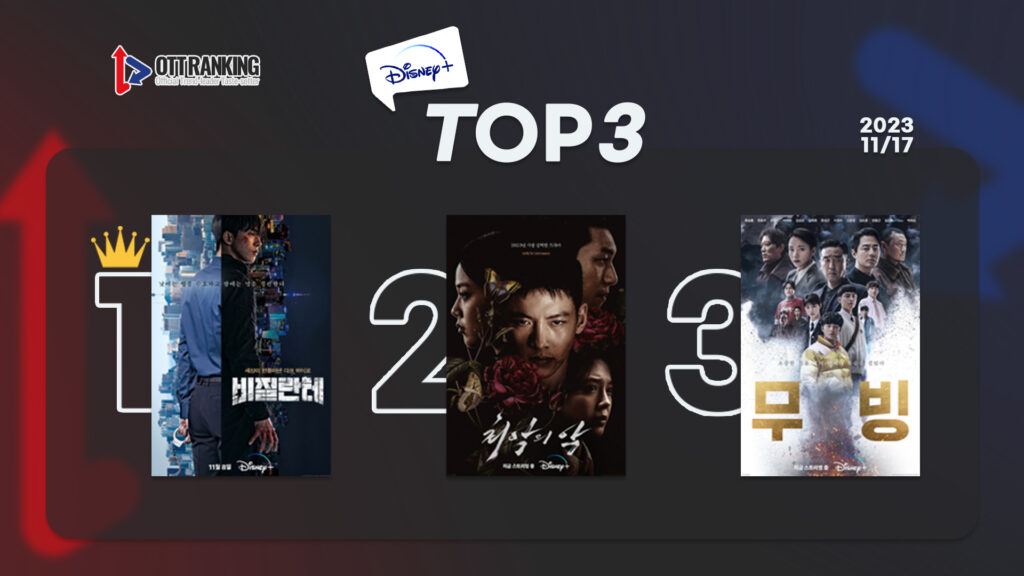 [위클리 OTT 랭킹] 11월 3주차 디즈니·쿠팡·왓챠·애플 TOP3 – 디즈니+의 질주