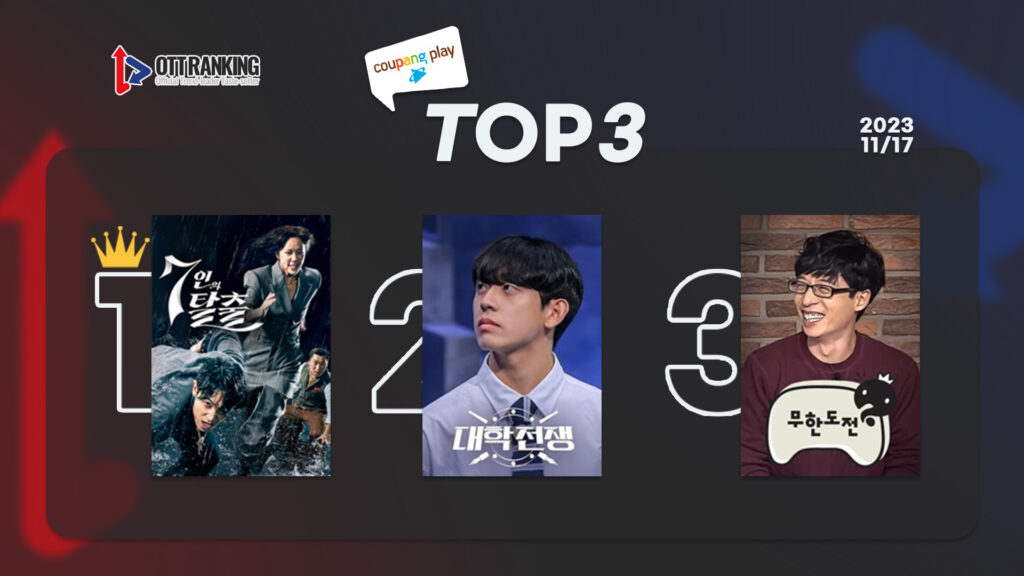 11월 셋째 주 디즈니+, 쿠팡플레이, 왓챠, 애플TV+ TOP3 순위를 살펴본다.