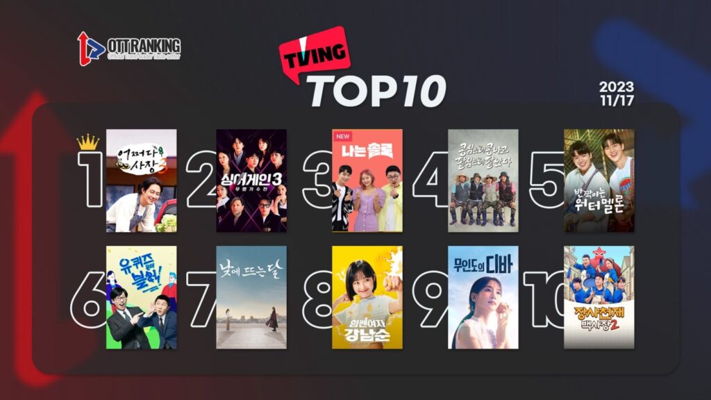 [데일리 OTT 랭킹] 11/17 티빙·웨이브·넷플 TOP10 – 예능으로 웃음 충전