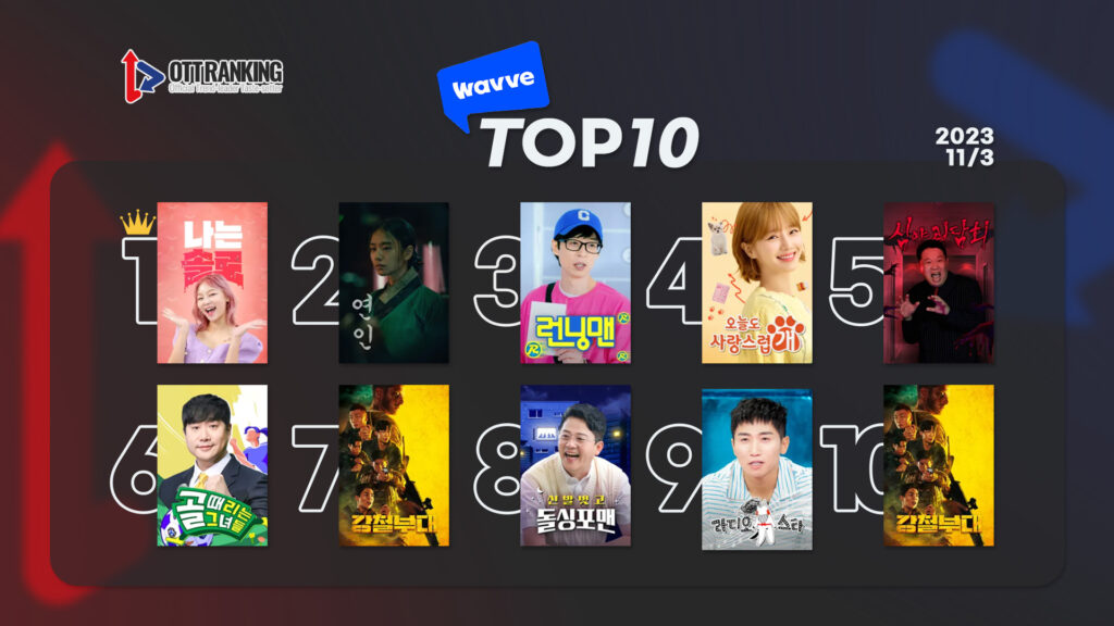 <OTT 플랫폼 BIG3 넷플릭스·웨이브·티빙에서 공개하는 일일 콘텐츠 순위를 전합니다>